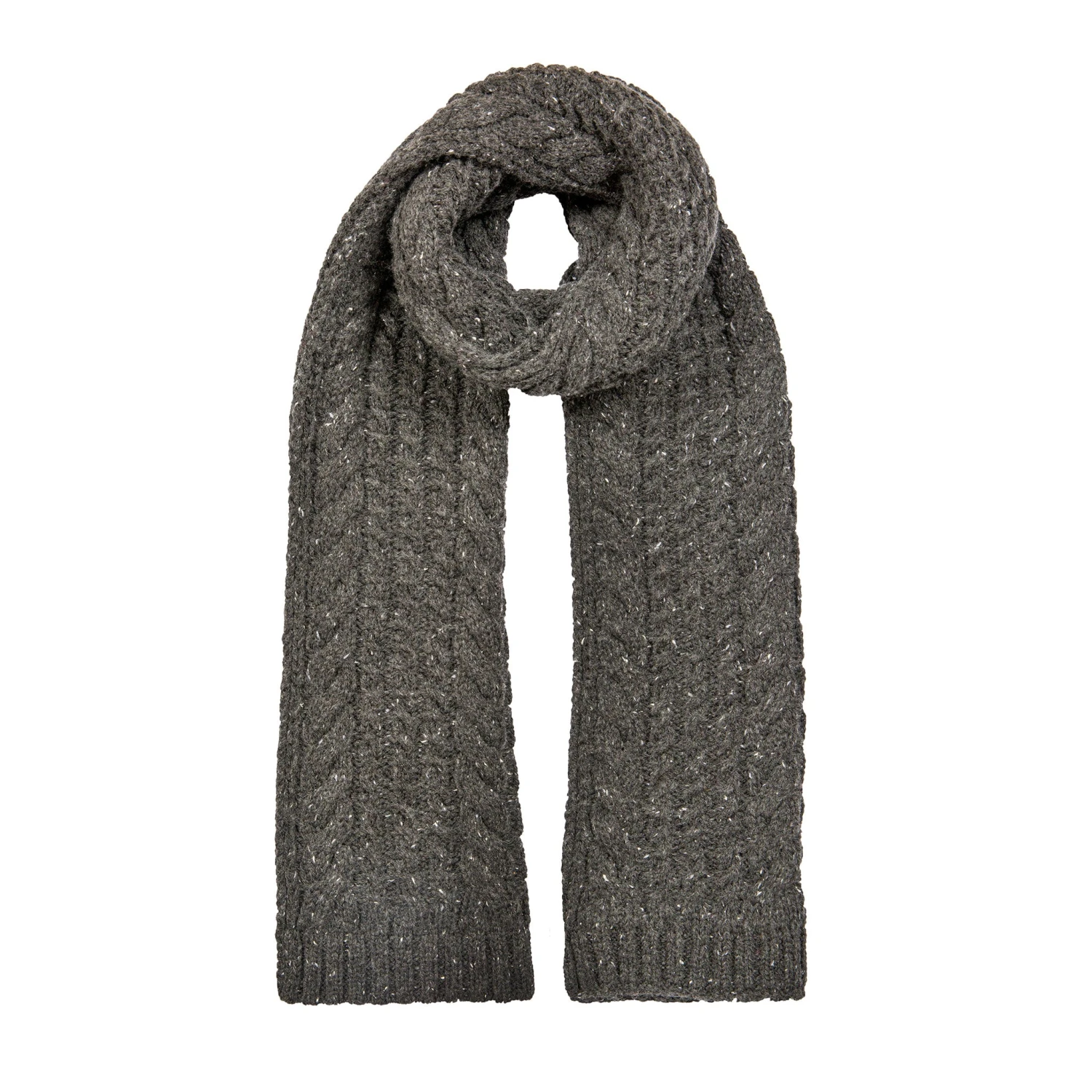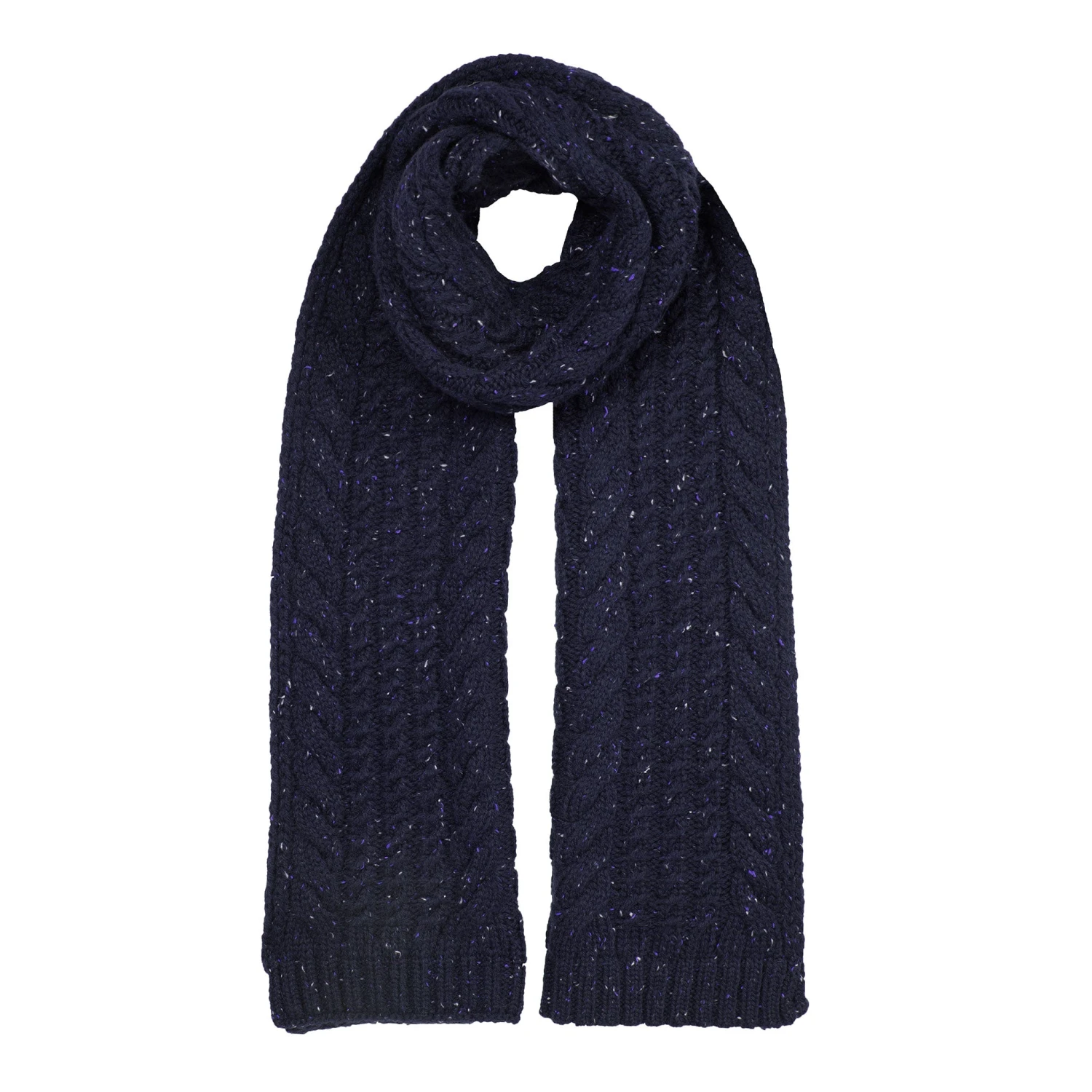Warm up your winter with our chunky cable knit scarf. Made from a wool blend, this knitted scarf is sure to keep out the cold on the frostiest mornings and chilliest evenings. The classic cable knit pattern boasts stylish flecks of colour thanks to the marl yarn and has a gentle stretch that offers maximum comfort. Finished with a neat ribbed hem, this winter scarf is complemented by the matching knitted gloves and beanie hat to create an effortlessly coordinated look.
