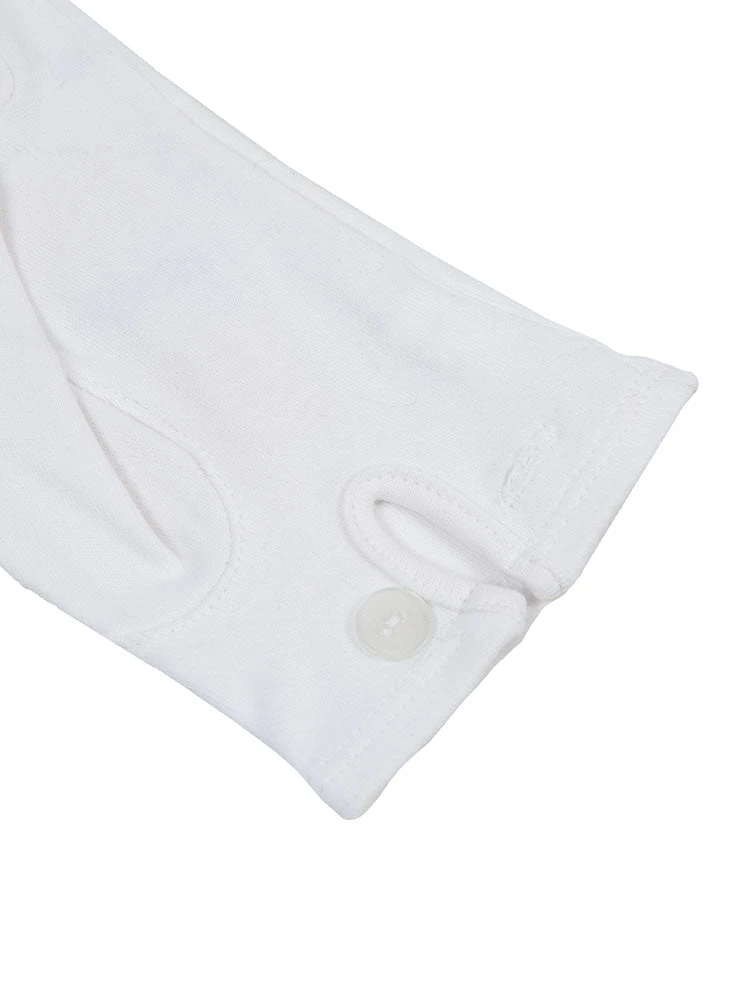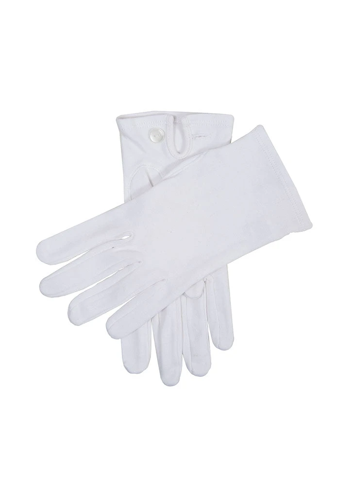 Dress for formal occasions with our white cotton gloves. With no decorative stitching, these cotton gloves are all about easy wearability. There are palm vents for comfort and button fastenings for a secure fit, adding subtle detail to the streamlined look. Smart and simple, they’re the ideal finishing touch when dressing for silver service, formal ceremonies or summer.