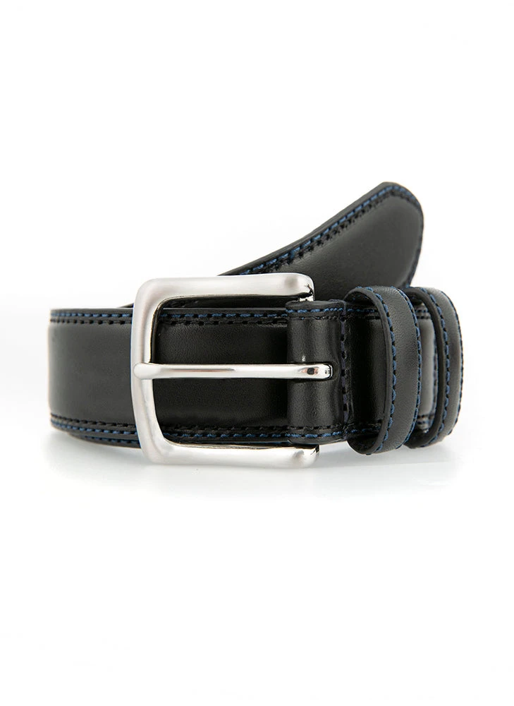 Our simple and sleek leather belt features an unexpected pop of colour with contrasting stitching for added detail.