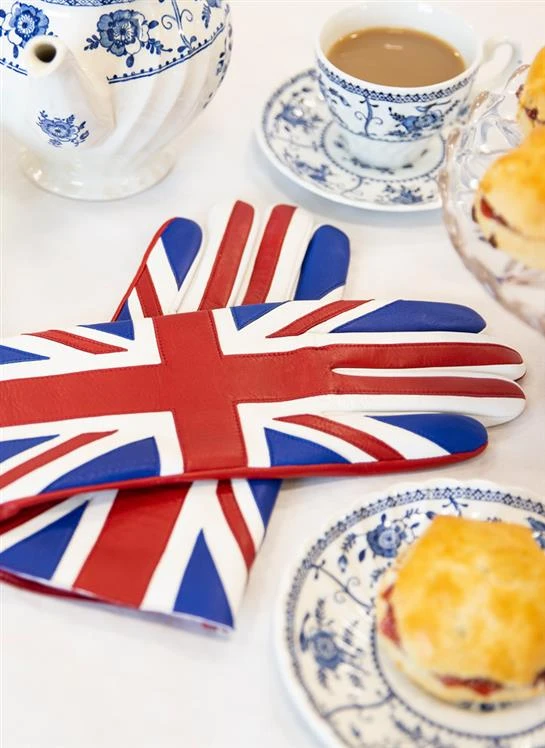 Wave the flag with our bold Union Jack-inspired leather gloves. Decorated with the unmistakable flag design across the back of the gloves, this bold accessory is a vision of vivid red, white and blue. The palm and thumb continue with the same stunning shade of scarlet while the lining is a subtle and elegant champagne colour. The lining itself is made from finest silk, offering luxurious comfort and year-long wear while the leather is premium lambskin. This delicate leather is beloved for its buttery soft texture and touchable smoothness, while the glove extends beyond the wrist for extra coverage. An eye-catching glove – perfect for adding a note of playful and patriotic Britishness to your wardrobe.