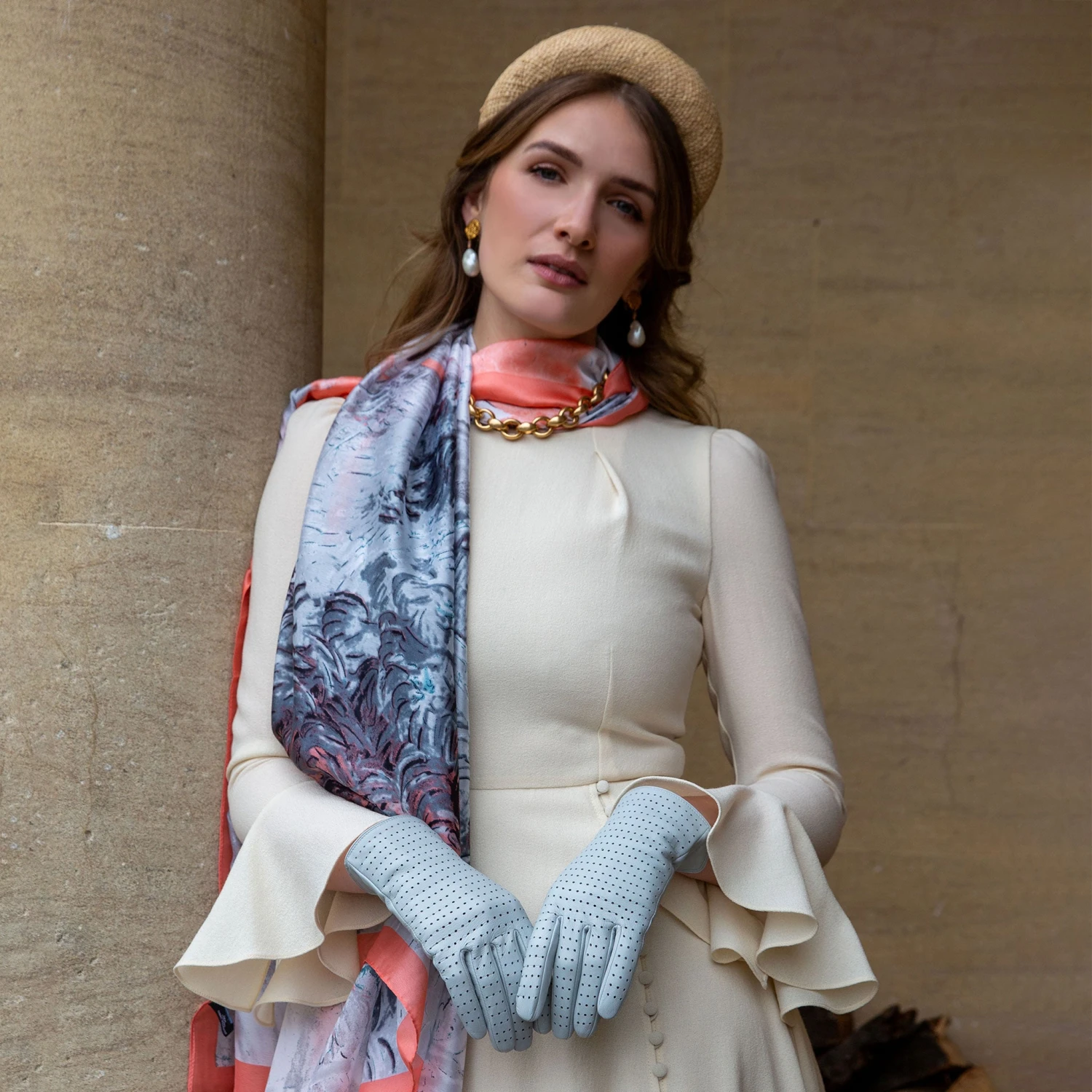 Introduce some artistic elegance into your summer wardrobe with our lightweight scarf. The abstract landscape design has a painterly look of soft brushstrokes, giving it a delicate and detailed feel. This is brought to life in a streamlined colour palette, led by warm coral and cool greys, to effortlessly coordinate with your summer wardrobe. Easy to wear and style thanks to the silk-like, lightweight fabric, this chic scarf is finished with a plain border. Classic but contemporary, wear casual or smart to add a dash of arty flair to your look.