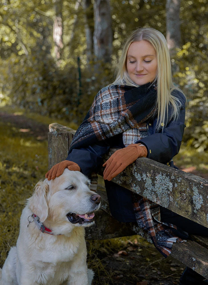 Our large check blanket scarf is detailed with short fringed ends. Perfect for wrapping up to keep warm on the cold winter days.
