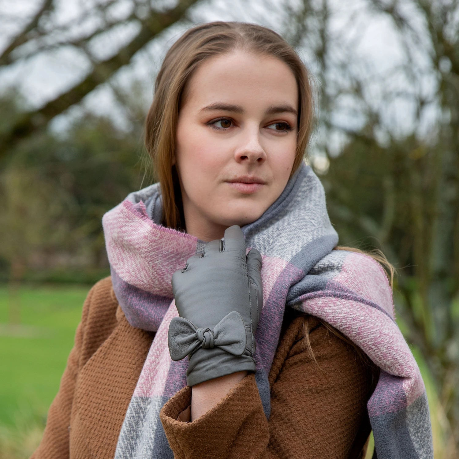 Enjoy two classic styles in one chic scarf, introducing our herringbone check scarf. It features a traditional check pattern of criss-crossing colours, but look closely and you’ll also spot a subtle herringbone pattern within some of the blocks. These understated chevrons add a dose of vintage style creating a winter warmer rich with charming elegance. The scarf is available in powder pink and dove grey – a perfect pairing of warm and cool tones. This colour combination complements classic and contemporary looks, ready to style with ease. The scarf is finished with fine yarn tassels – a delicate trim for a distinctive scarf.