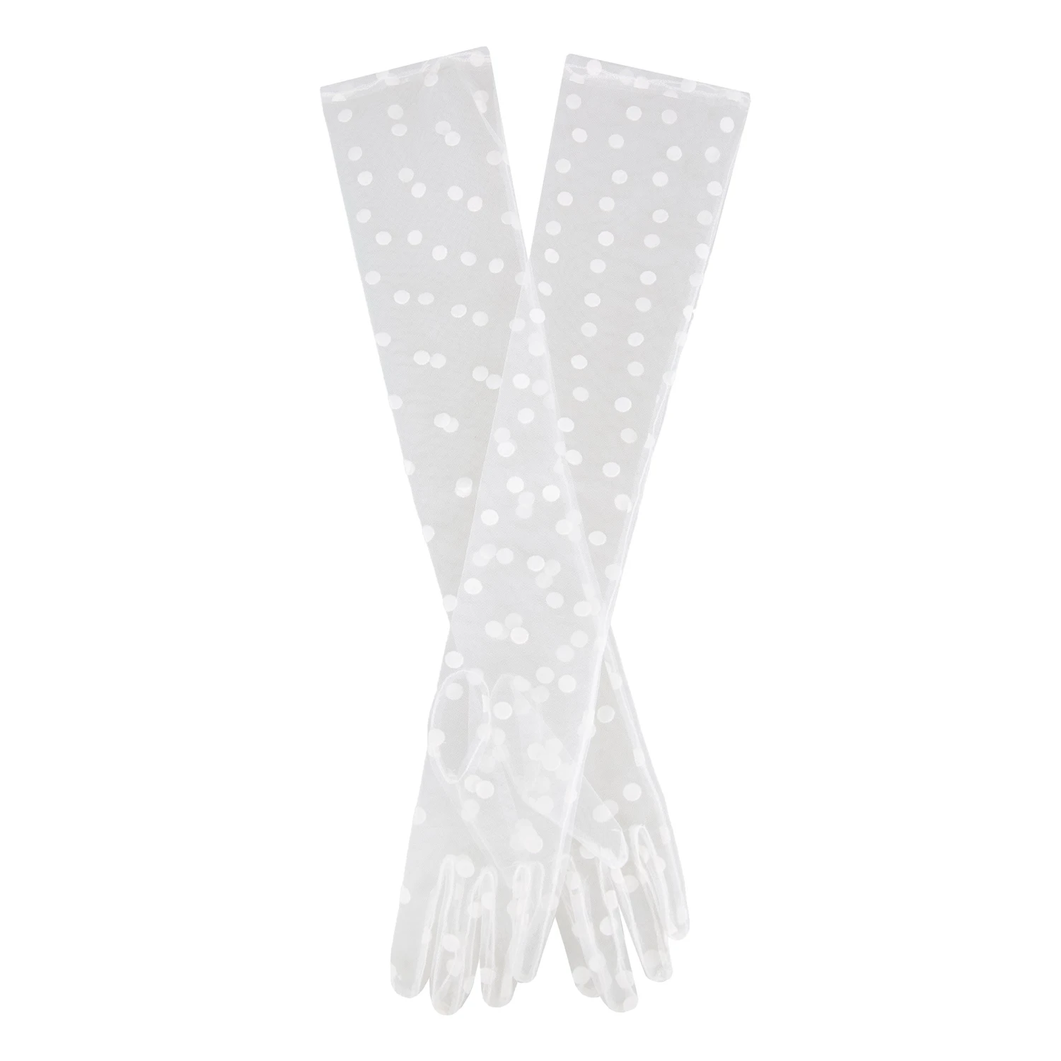 Find your style sweet spot with Lila, our long tulle gloves. Tulle is a fantastic choice for statement evening gloves. The fine netting is delicate for instant refinement, brings a soft suggestion of colour while also being sheer for see-through sensuality. Our Lila gloves are further elevated by the cute spotty design which adds a timeless, vintage-feel. And being opera gloves, they extend to your upper arms for fantastic coverage that exudes old-school glamour. Choose from elegant ivory for daytime events and weddings or classic black for balls and parties. A special cocktail of true elegance and flirty fun ready to dazzle whenever you are.
