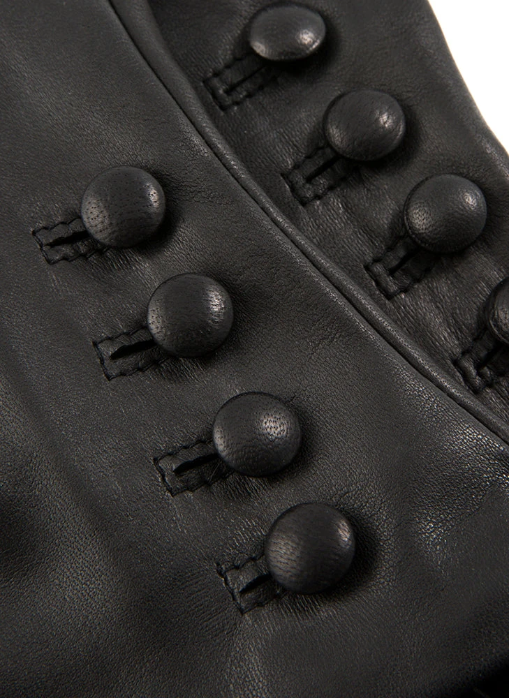 Opt for old school elegance with Evangeline. These refined leather gloves are inspired by our bestselling Evelyn gloves, enjoying the same vintage details that make Evelyn so enduringly popular. But look closely and there’s one big difference – these gloves are phone friendly. Evangeline’s premium hairsheep leather boasts touchscreen technology, meaning you can wear the gloves and still use your mobile phone – ideal for those with busy lifestyles. This upgrade doesn’t compromise on any of the fashion flourishes, with these luxury leather gloves finished with four decorative buttons and handsewn three-point stitching. Offering superior warmth and comfort courtesy of the colour-contrasting cashmere lining and measuring mid-arm in length for extended coverage, these glamorous gloves add sophistication to any winter look.