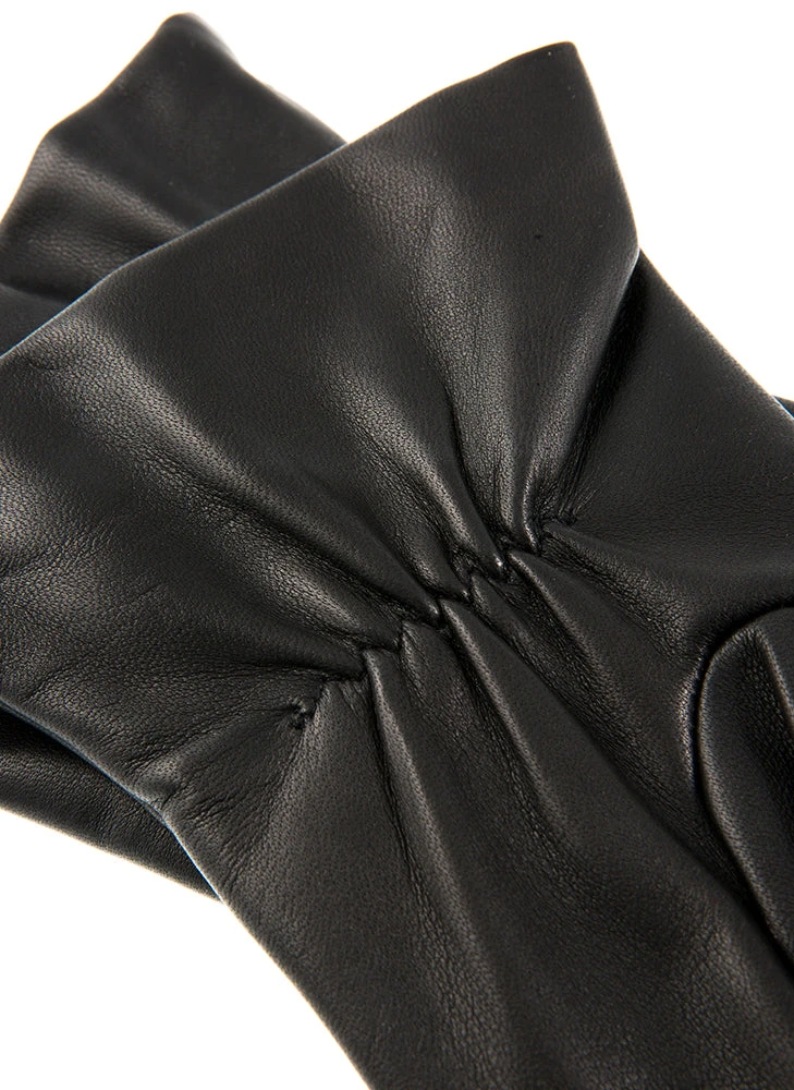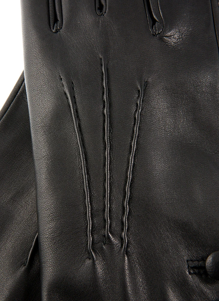 - Handsewn three-point decorative stitching on the back of the gloves elongates the look of the hand for a refined appearance