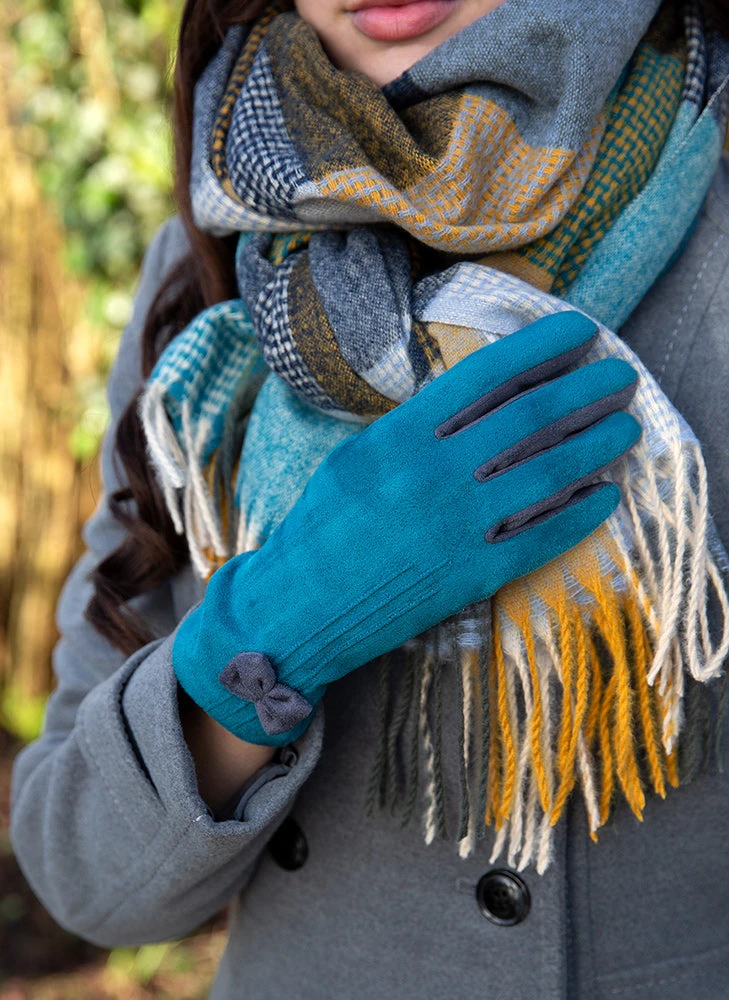 The classic and elegant feel of these faux suede gloves with bow and stitch detail make it a must-have this winter. This touchscreen glove is a great way to stay warm and practical as we hit the colder months.