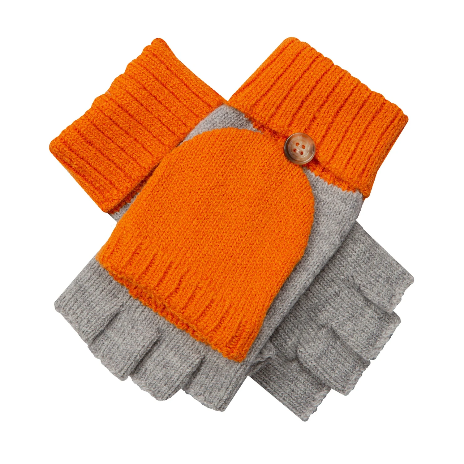 Enjoy the very best of both gloves and mittens with our clever two-in-one. Use as fingerless gloves for full freedom of movement or dial up the cosy comfort with the mitten flap. Simply unbutton the mitten hood to wrap your fingers in instant winter warmth. These knitted gloves offer unbeatable versatility and also look the part thanks to the bold two-tone design. Choose from two eye-catching colour combinations – berry red with vivid pink or dove grey with zesty orange. Why choose between gloves and mittens when you can benefit from both in one handy item? The perfect solution for busy lives and seasonal weather changes.